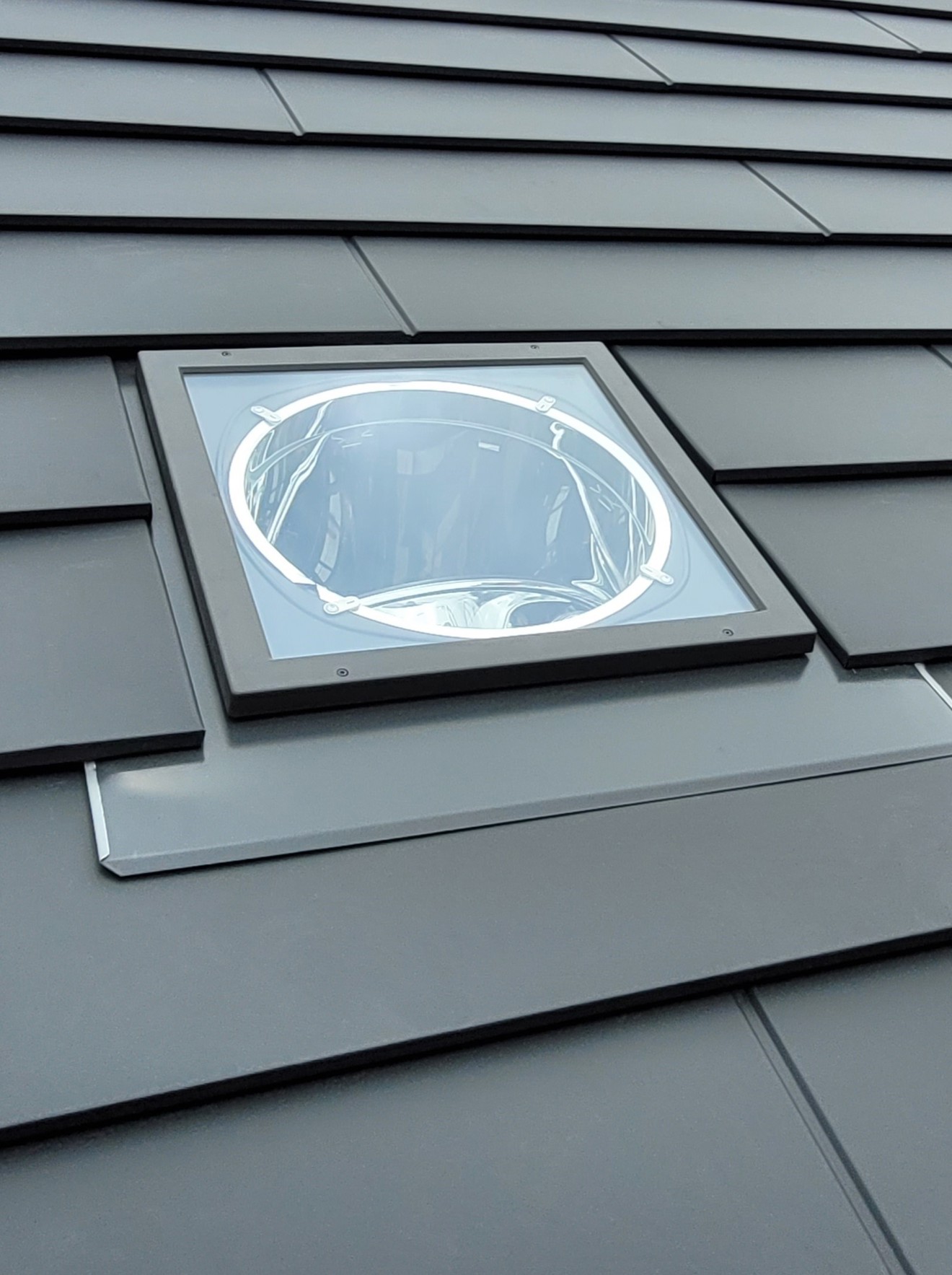 Gerard’s Concealed Fastening (CF) technology has been incorporated into the design, adding to the discreet appearance of the panel. Each panel interlocks with the panel from the row underneath, hiding the fasteners between the two panels. CF protects fasteners from exposure to the elements and provides a clear optical line across the plane of the roof.